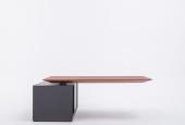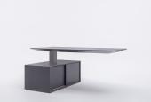 Minimalistická forma kancelárskeho nábytku inšpirovaná modernou technologiou. Vrchná doska stola je neviditeľne umiestnená na konštrukciu, výškovo nastaviteľná. Hrúbka stolovej dosky je 78mm, použitý materiál MDF/HPL . V pracovnej doske je elektrické napájanie + USB.