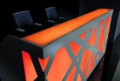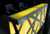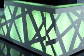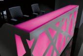 Pre recepčný pult ZIG-ZAG je typické mohutné orámovanie bielej konštrukcie, ktorá je v kontraste s farebným podsvietením celej prednej časti recepcie. Je účinná v tmavej miestnosti nakoľko spĺňa úlohu veľkého svetla. Prvky recepcie umožňujú vyskladať pult do rôznych tvarov podľa možnosti priestoru. LED osvetlenie je riadené pomocou diaľkového ovládania, ktoré umožňuje automaticky regulovať intenzitu a farbu svetla. Stlačením jedného tlačidla zmeníte farbu recepcie alebo pomocou zvoleného programu nastavíte monotónny, alebo pulzujúci rytmus zmeny farieb.